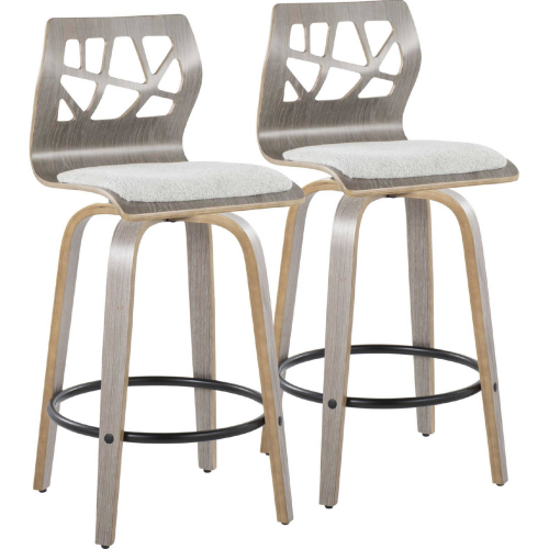Lumisource Folia 26" Swivel Counter Stool in Light Grey Wood & Light Grey Fabric with Black Footrest (Set of 2)