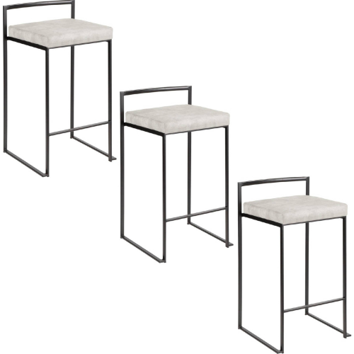 Lumisource Fuji 26" Stackable Counter Stool in Black Metal & Light Grey Cowboy Fabric (Set of 3)