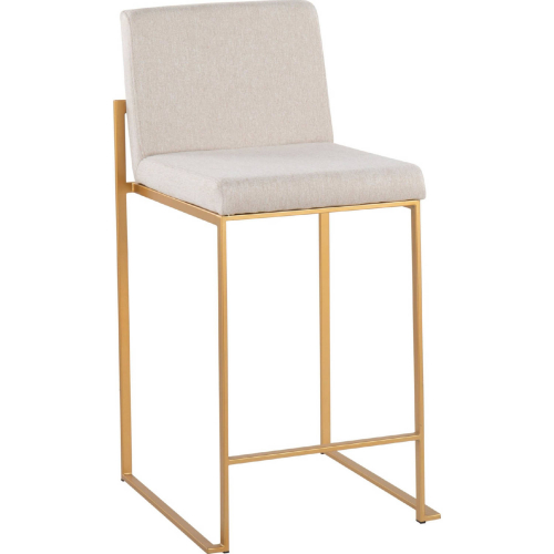 Lumisource Fuji 26" High Back Counter Stool in Gold Steel & Beige Fabric (Set of 3)