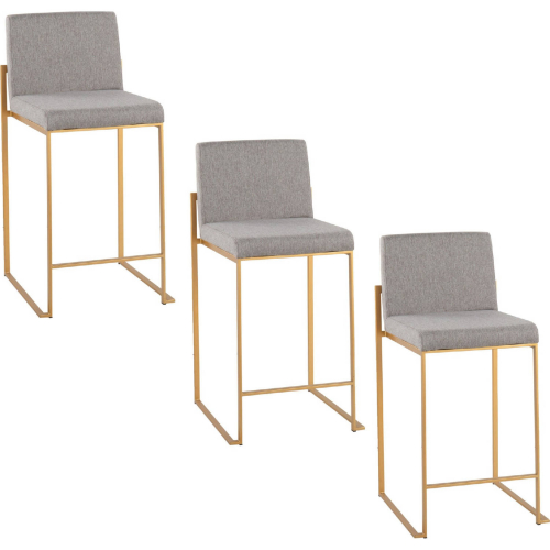 Lumisource Fuji 26" High Back Counter Stool in Gold Steel & Grey Fabric (Set of 3)