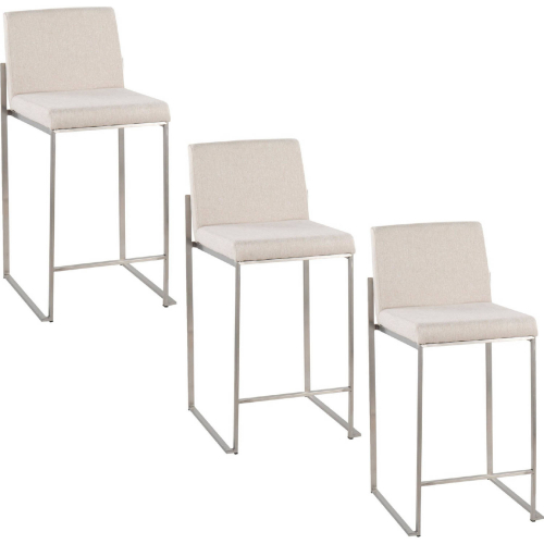 Lumisource Fuji 26" High Back Counter Stool in Stainless Steel & Beige Fabric (Set of 3)