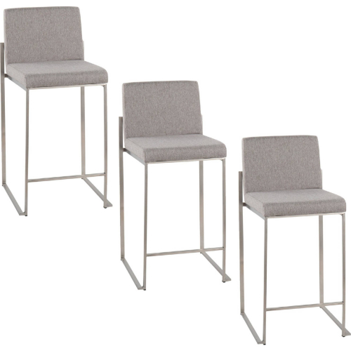 Lumisource B26-FUJIHBFB SSGY3 Fuji 26" High Back Counter Stool Stainless Steel Grey Fabric (Set of 3)