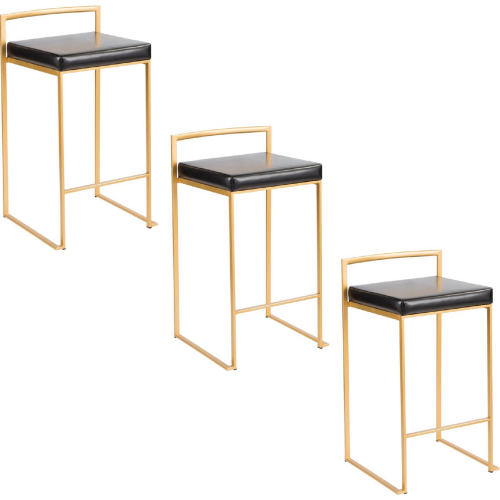 Lumisource B26-FUJIPU AUBK3 Fuji 26" Counter Stool Gold Black Leatherette (Set of 3)
