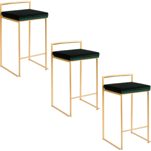 Lumisource B26-FUJIV AUGN3 Fuji 26" Stackable Counter Stool Gold Green Velvet (Set of 3)
