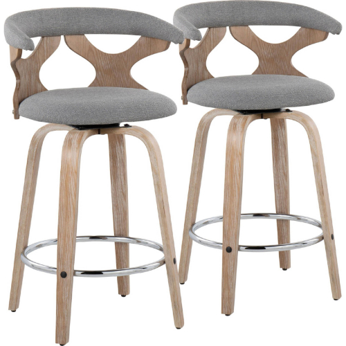 Lumisource Gardenia 26" Swivel Counter Stool in White Washed Wood & Grey Fabric (Set of 2)
