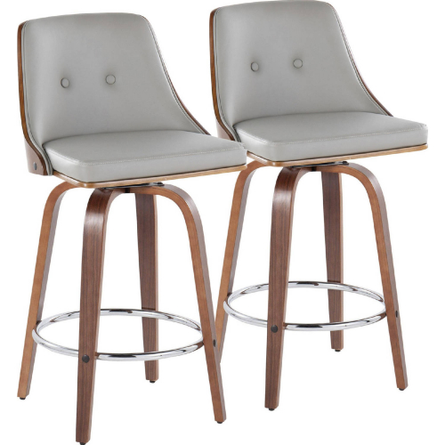 Lumisource B26-GNNPU-GRTZR2 WLWLLGY2 Gianna 26" Swivel Counter Stool Walnut Wood Light Grey Leatherette (Set of 2)