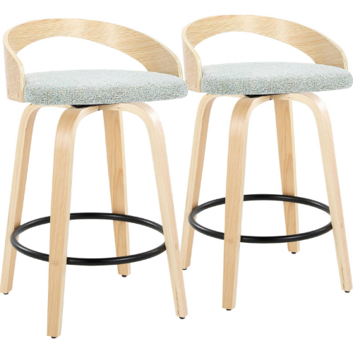 Lumisource B26-GROTTO-GRTZQ2 NANAGN2 Grotto 26" Swivel Counter Stool Natural Wood Green Fabric Black Footrest (Set of 2)
