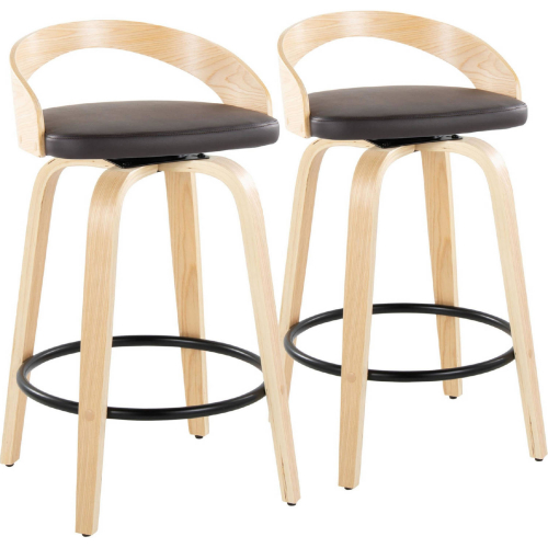 Lumisource B26-GROTTOPU-GRTZQ2 NANABN2 Grotto 26" Swivel Counter Stool Natural Wood Brown Leatherette Black Footrest (Set of 2)