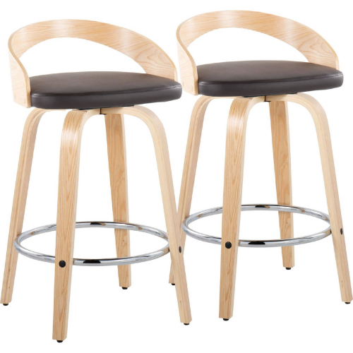 Lumisource B26-GROTTOPU-GRTZR2 NANABN2 Grotto 26" Swivel Counter Stool Natural Wood Brown Leatherette Chrome Footrest (Set of 2)