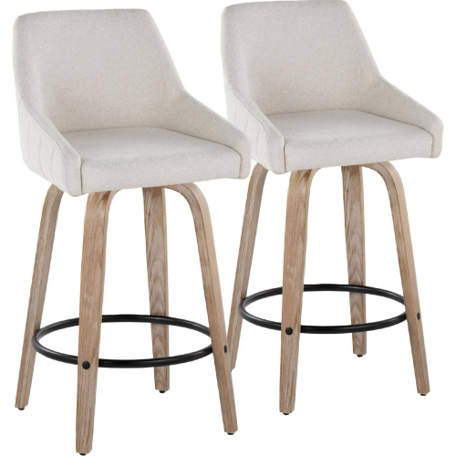 Lumisource Hannah 26" Swivel Counter Stool in White Washed Wood & Cream Fabric with Black Footrest (Set of 2)