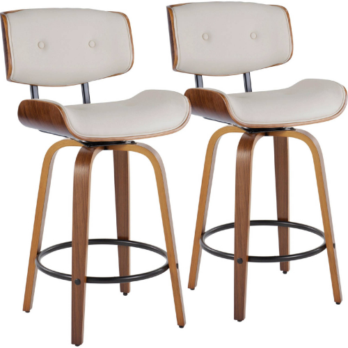 Lumisource Lombardi 26" Swivel Counter Stool in Walnut Wood & Cream Leatherette with Black Footrest (Set of 2)