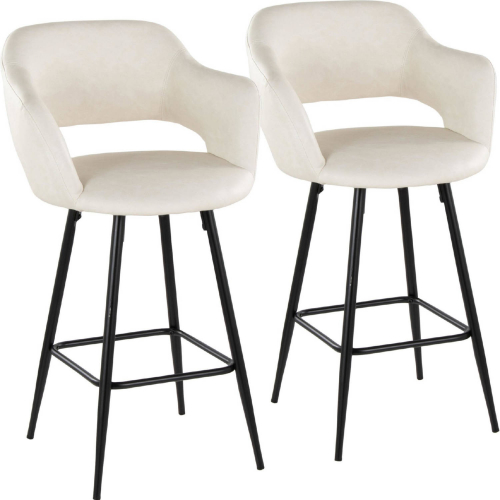 Lumisource B26-MARGPU-MARGX2 BKCR2 Margarite 26" Counter Stool Black Metal Cream Leatherette Black Footrest (Set of 2)