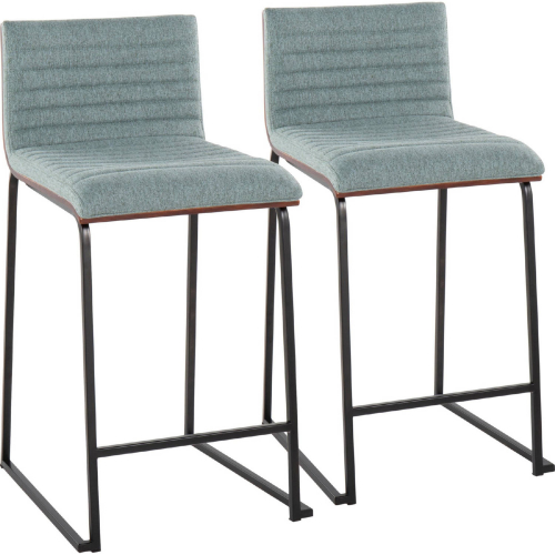 Lumisource Mason Mara 26" Counter Stool in Black Metal, Walnut Wood & Green Fabric (Set of 2)