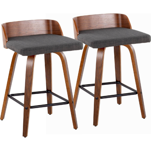 Lumisource B26-MAYAFB-GRTZX2 WLWLCHAR2 Maya 26" Swivel Counter Stool Walnut Wood Charcoal Fabric Black Footrest (Set of 2)