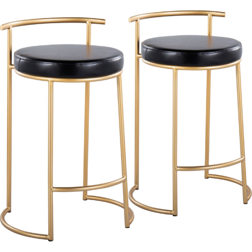 Lumisource Round Fuji 26" Counter Stool in Gold & Black Leatherette (Set of 2)