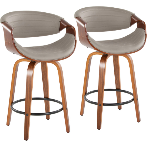 Lumisource B26-SYMP2-SWVQ WLGY2 Symphony Counter Stool Walnut Grey Leatherette (Set of 2)