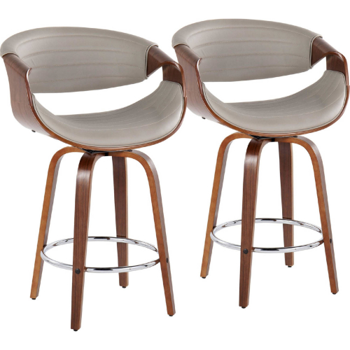 Lumisource B26-SYMPPU-GRTZR2 WLWLGY2 Symphony 26" Swivel Counter Stool Walnut Wood Grey Leatherette Chrome Footrest (Set of 2)