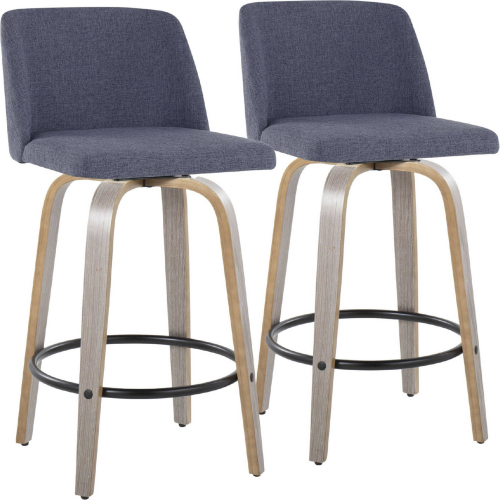 Lumisource B26-TRNOFB-GRTZQ2 LGYBU2 Toriano 26" Swivel Counter Stool Light Grey Wood Blue Fabric Black Footrest (Set of 2)