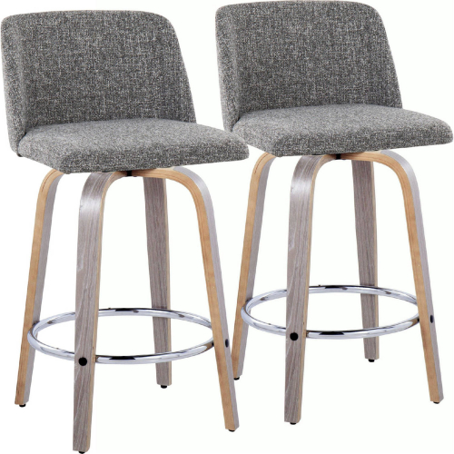 Lumisource B26-TRNOFB-GRTZR2 LGYNGY2 Toriano 26" Swivel Counter Stool Light Grey Wood Grey Noise Fabric Chrome (Set of 2)
