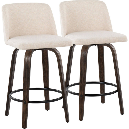 Lumisource Toriano 26" Swivel Counter Stool in Walnut Glazed Wood & Cream Noise Fabric (Set of 2)