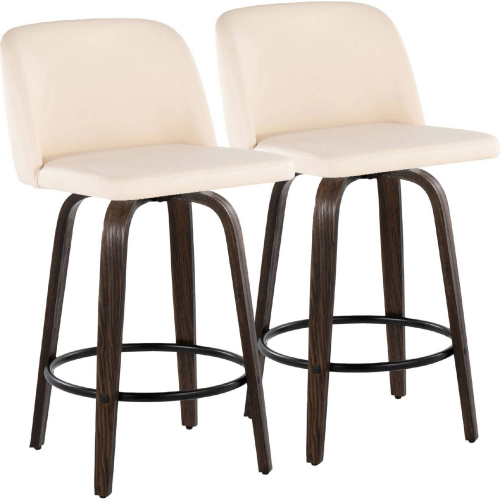 Lumisource Toriano 26" Swivel Counter Stool in Walnut Glazed Wood & Cream Leatherette (Set of 2)
