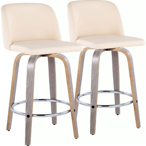 Lumisource B26-TRNOPU-GRTZR2 LGYCR2 Toriano 26" Swivel Counter Stool Light Grey Wood Cream Leatherette Chrome (Set of 2)