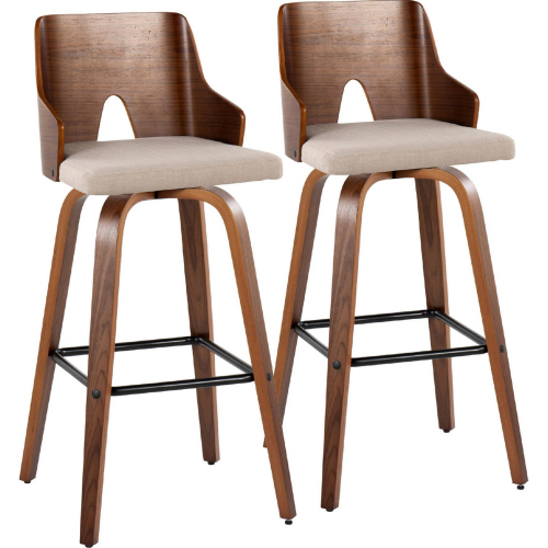 Lumisource B30-ARIA-GRTZX2 WLWLBG2 Ariana 30" Swivel Bar Stool Walnut Wood Beige Fabric Black Footrest (Set of 2)