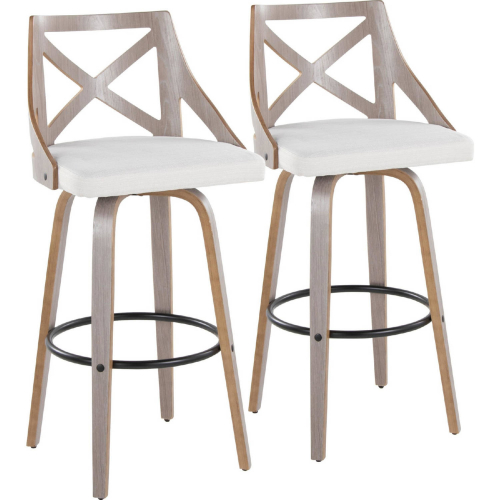 Lumisource B30-CHARLOTFB-GRTZQ2 LGYLGYCR2 Charlotte 30" Swivel Bar Stool Light Grey Wood Cream Noise Fabric Black Footrest (Set of 2)