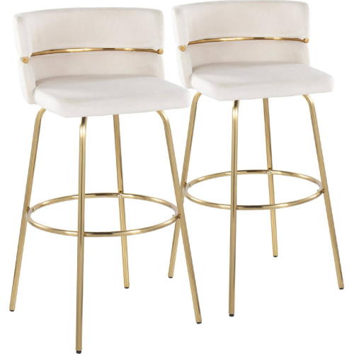 Lumisource B30-CINCHV-CLARG2 AUAUCR2 Cinch 30" Swivel Bar Stool Gold Cream Velvet Round Footrest (Set of 2)