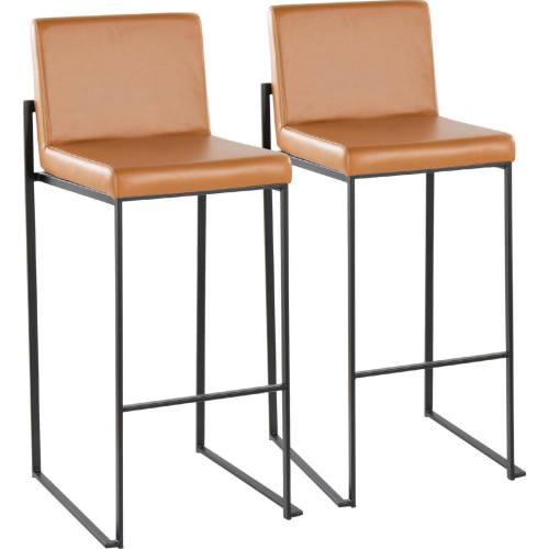 Lumisource Fuji 30" High Back Bar Stool in Black Metal & Camel Leatherette (Set of 2)