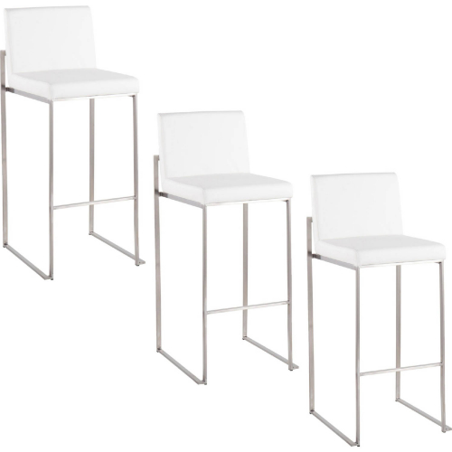Lumisource B30-FUJIHBPU SSW3 Fuji 30" High Back Bar Stool Stainless Steel White Leatherette (Set of 3)