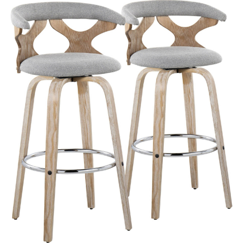 Lumisource B30-GARDFB-GRTZR2 WWLGY2 Gardenia 30" Swivel Bar Stool White Washed Wood Grey Fabric Chrome Footrest (Set of 2)