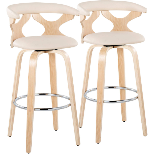 Lumisource B30-GARDPU-GRTZR2 NANACR2 Gardenia 30" Swivel Bar Stool Natural Wood Cream Leatherette Chrome Footrest (Set of 2)