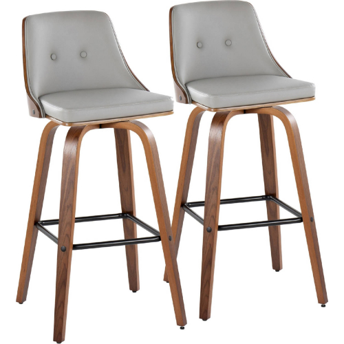 Lumisource B30-GNNPU-GRTZX2 WLWLLGY2 Gianna Swivel Bar Stool Walnut Wood Light Grey Leatherette Black Footrest (Set of 2)