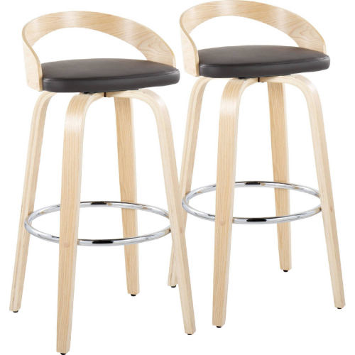 Lumisource B30-GROTTOPU-GRTZR2 NANABN2 Grotto 30" Swivel Bar Stool Natural Wood Brown Leatherette Chrome Footrest (Set of 2)