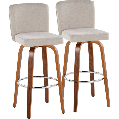 Lumisource Henry 30" Swivel Bar Stool in Walnut Wood & Beige Fabric with Round Chrome Footrest (Set of 2)