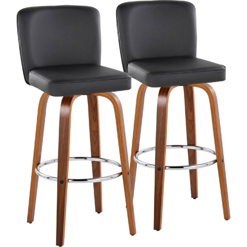 Lumisource Henry 30" Swivel Bar Stool in Walnut Wood & Black Leatherette with Round Chrome Footrest (Set of 2)