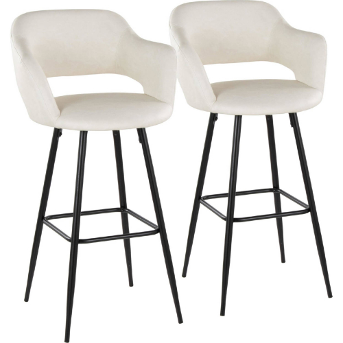 Lumisource Margarite 30" Bar Stool in Black Metal & Cream Leatherette with Black Footrest (Set of 2)