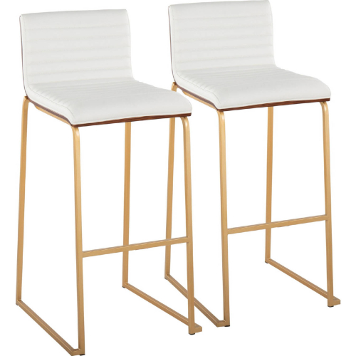 Lumisource B30-MASONPU-MARA1 AUWLW2 Mason Mara 30" Bar Stool Gold Walnut Wood White Leatherette (Set of 2)