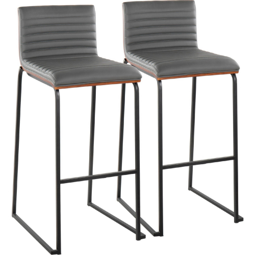 Lumisource B30-MASONPU-MARA1 BKWLGY2 Mason Mara 30" Bar Stool Black Metal Walnut Wood Grey Leatherette (Set of 2)