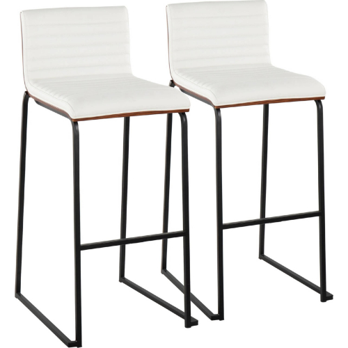Lumisource B30-MASONPU-MARA1 BKWLW2 Mason Mara 30" Bar Stool Black Metal Walnut Wood White Leatherette (Set of 2)