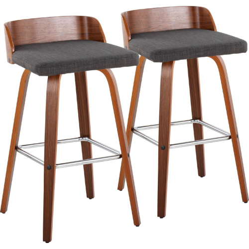 Lumisource B30-MAYAFB-GRTZS2 WLWLCHAR2 Maya 30" Swivel Bar Stool Walnut Wood Charcoal Fabric Chrome Footrest (Set of 2)