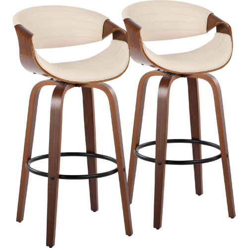 Lumisource Symphony 30" Swivel Bar Stool in Walnut Wood & Black Leatherette with Black Footrest (Set of 2)