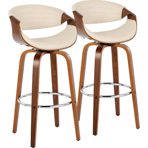 Lumisource Symphony 30" Swivel Bar Stool in Walnut Wood & Cream Leatherette with Chrome Footrest (Set of 2)