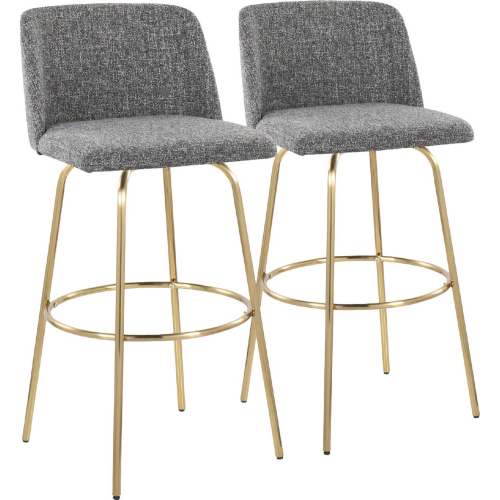 Lumisource B30-TRNO-CLARZG2 AUNGY2 Toriano 30" Swivel Bar Stool Grey Noise Fabric Gold Round Footrest (Set of 2)