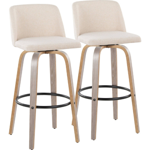 Lumisource B30-TRNOFB-GRTZQ2 LGYNCR2 Toriano 30" Swivel Bar Stool Light Grey Wood Cream Noise Fabric Black Footrest (Set of 2)