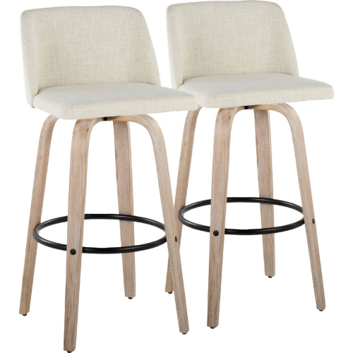 Lumisource Toriano Bar Stool in White Washed Wood & Cream Fabric with Black Footrest (Set of 2)