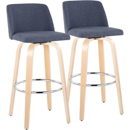 Lumisource B30-TRNOFB-GRTZR2 NABU2 Toriano 30" Swivel Bar Stool Natural Wood Blue Fabric Chrome Footrest (Set of 2)