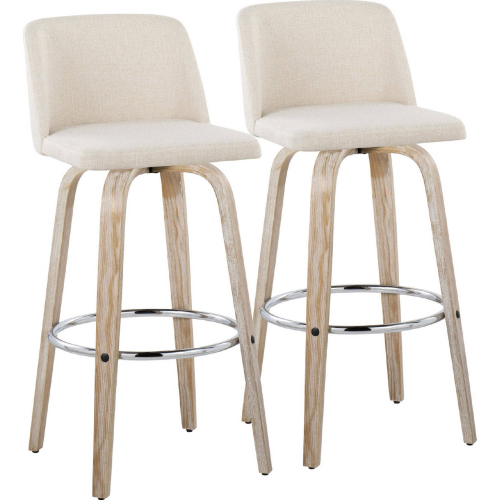 Lumisource Toriano 30" Swivel Bar Stool in White Washed Wood & Cream Noise Fabric & Chrome (Set of 2)