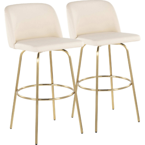 Lumisource B30-TRNOPU-CLARZG2 AUCR2 Toriano 30" Swivel Bar Stool Cream Leatherette Gold Round Footrest (Set of 2)